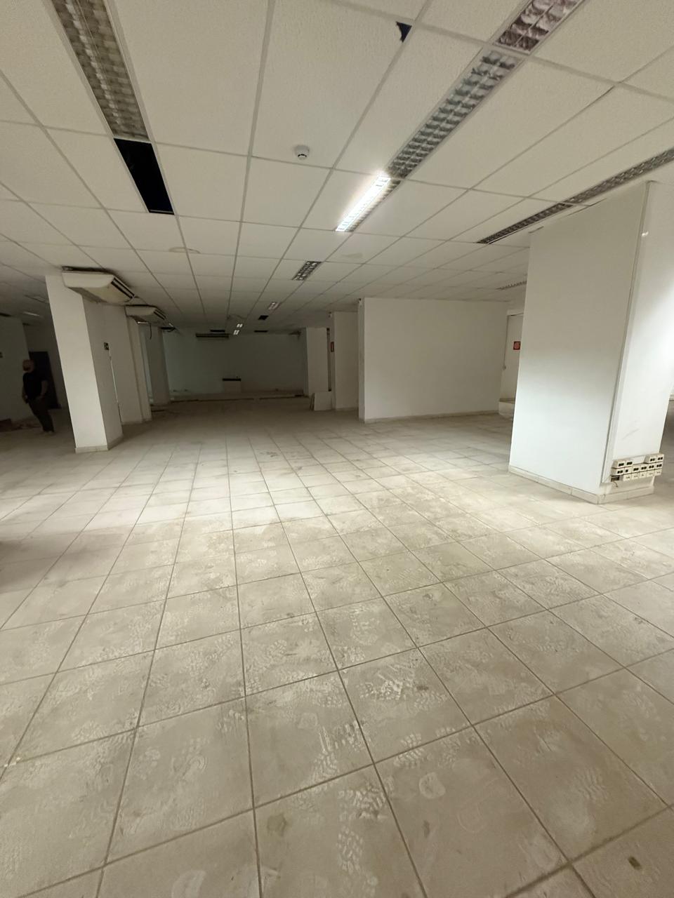 Loja ampla com iluminação, acabamentos e ar-condicionado.