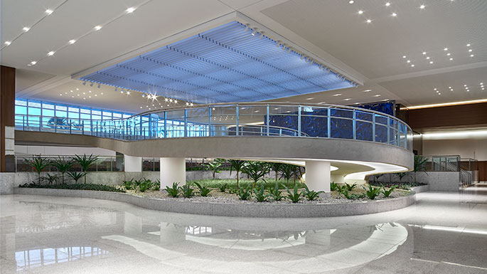 O complexo conta com auditório para até 500 pessoas, com amplo estacionamento dividido em 04 subsolos, há 626 vagas para veículos com disponibilidade de vagas rotativas, bicicletário com vestiários e área de carga e descarga além de 9 elevadores de alta tecnologia.